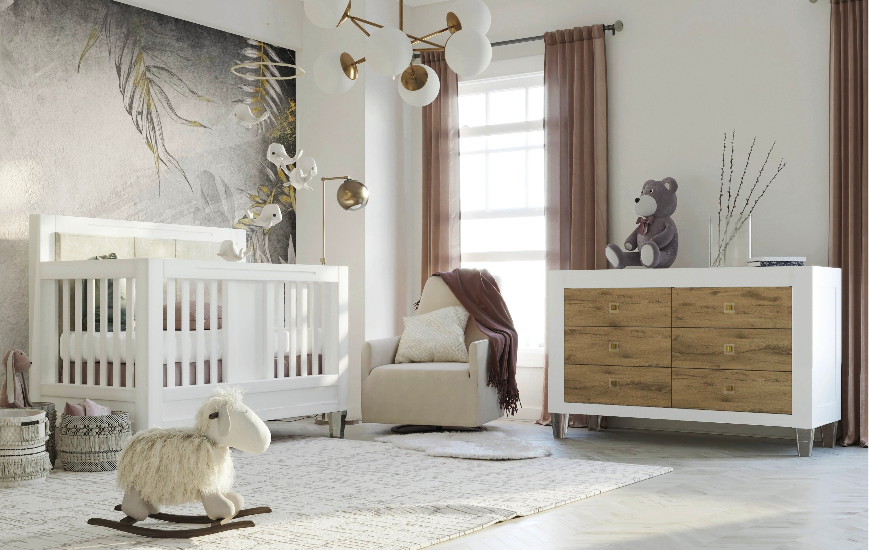 Pătuț Convertibil Millenario din Lemn Masiv Design Modern 4-în-1, Evolutiv de la Bebelus la Adult